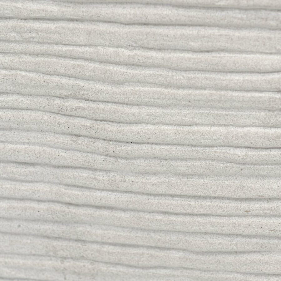 Smooth concrete is etched with a linear pattern, bringing an organic look with texture to this block-style coffee table.