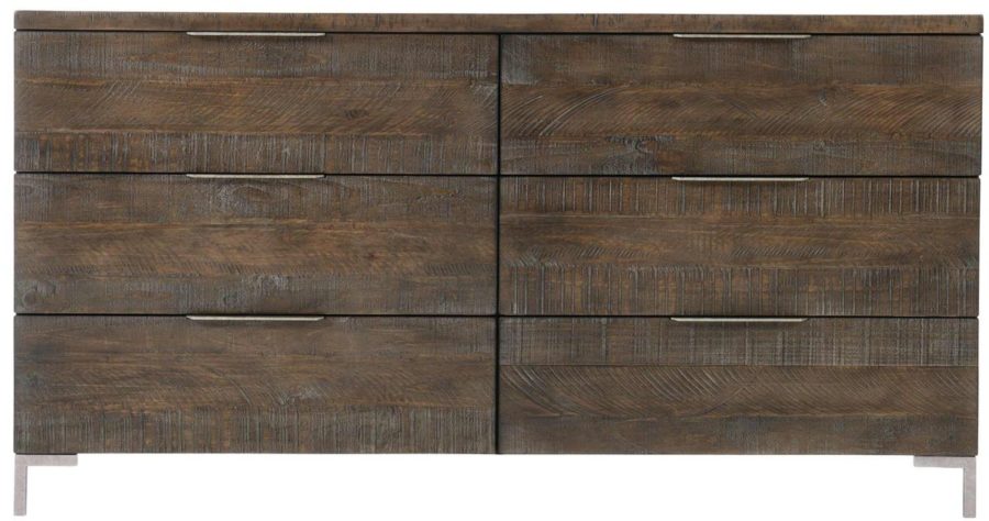 Six drawers with metal tab pulls, Tubular steel feet in painted Gray Mist finish, Center wood support leg, Adjustable glides, Anti-tip kit