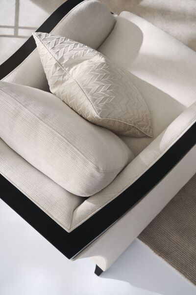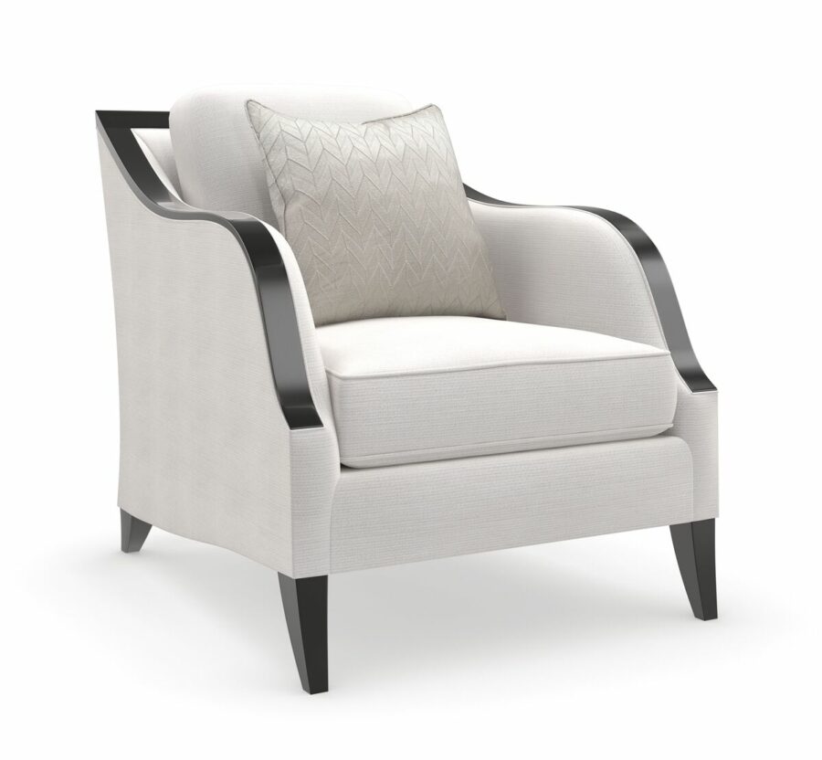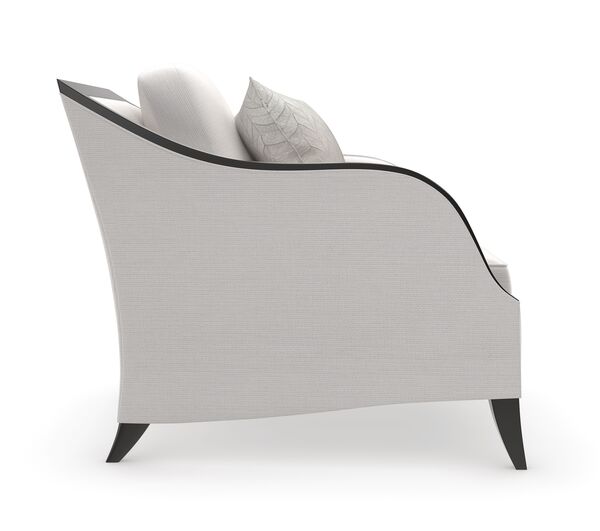 Like our Pitch Perfect sofa, this sleek track arm style is elegantly defined by an exposed wood frame in a richly contrasting, Chocolate Truffle finish. Introduces a classic silhouette, finely tailored in a cream basketweave and accented with a kidney back pillow for added comfort.