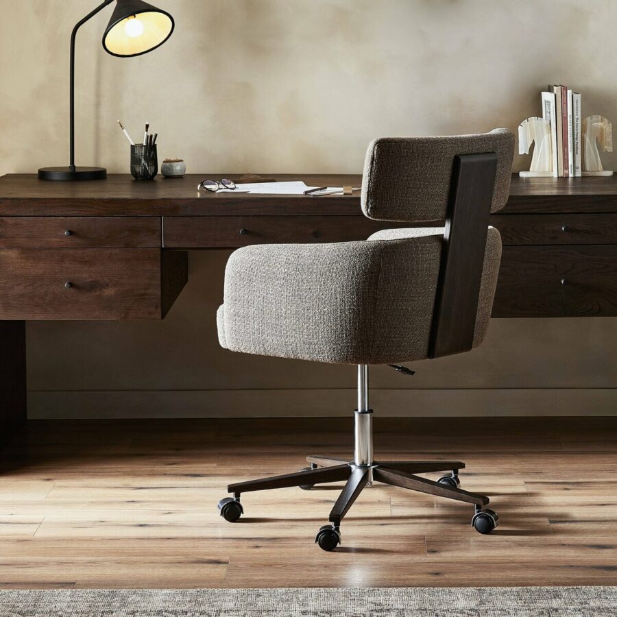 A high, curved back and plush high-performance fabric seat cradle you in comfort. Performance fabrics are specially created to withstand spills, stains, high traffic, and wear, ensuring long-term comfort and unmatched durability. Height adjustable with a 360-degree swivel.