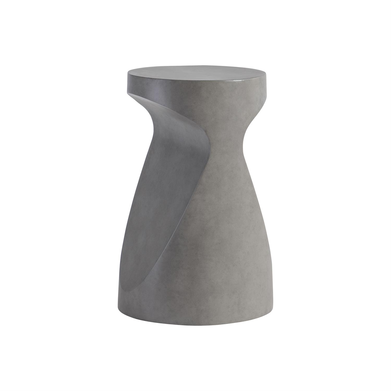 Concave shaping on the sides offers a quiet beauty for the Sereno accent table. Soft lines and simple shaping are rendered in cast resin with textured faux stone in the Sasso finish.