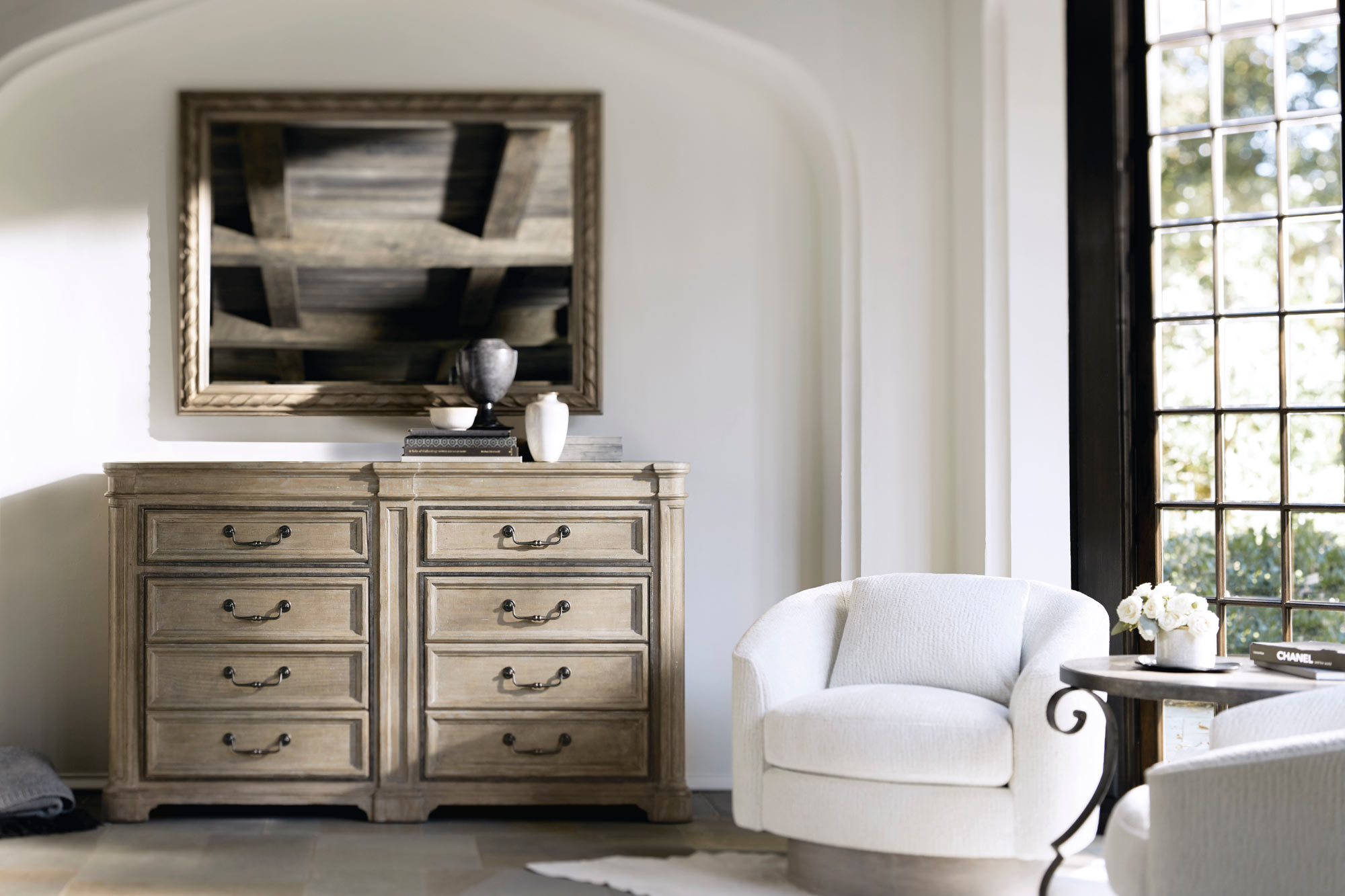 Decorative carved wood-framed mirror in Criollo finish with 1-1/4″ beveled mirrored glass
